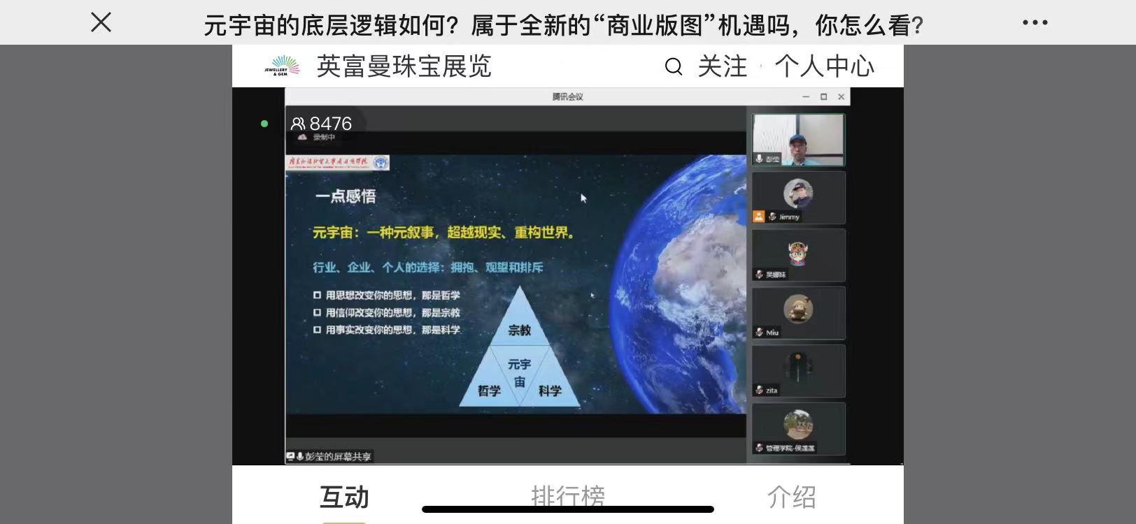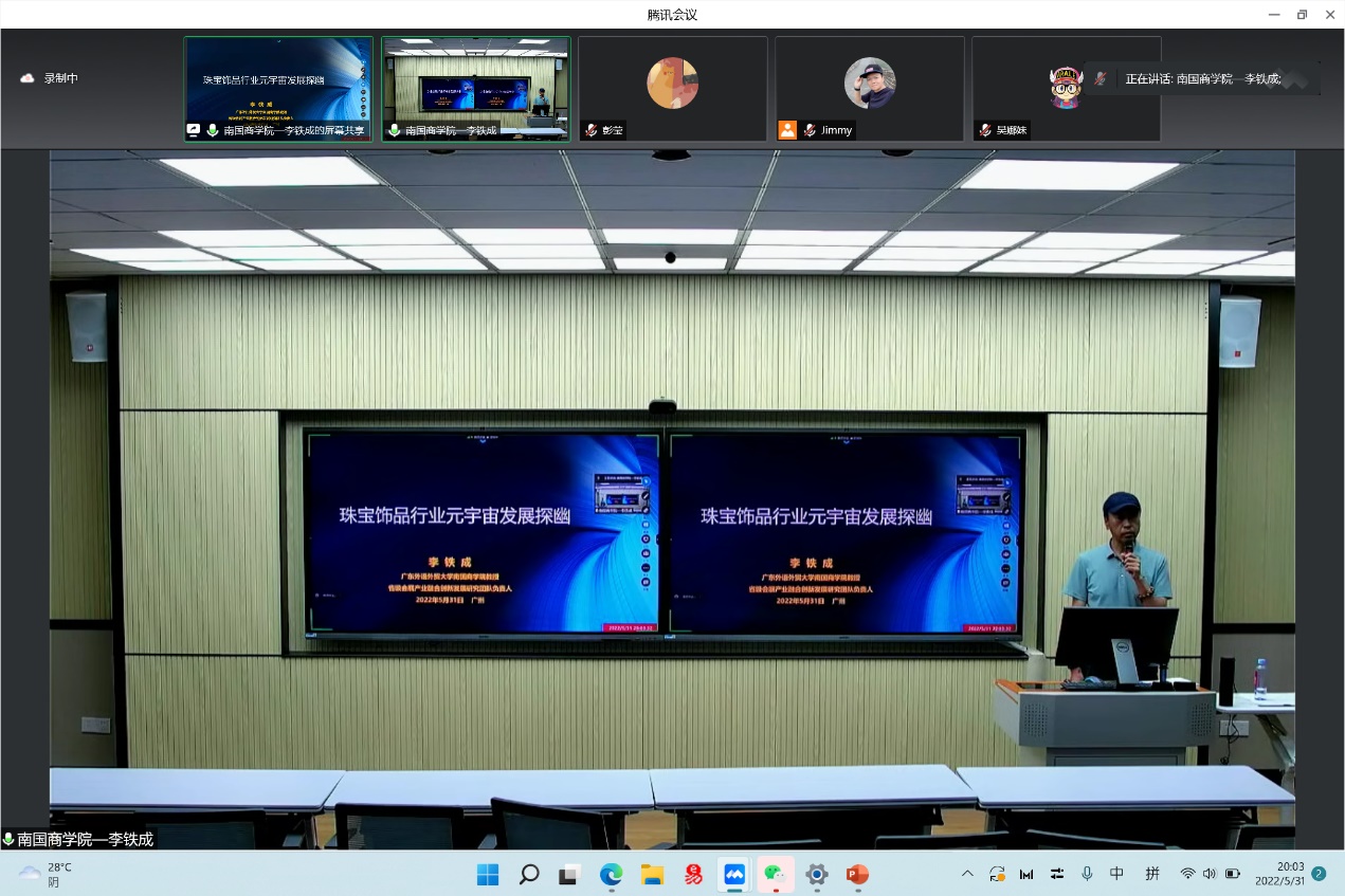 本网讯 5月31日晚,受英富曼珠宝展览团队的邀请,我院李铁成教授做客直播间,进行“珠宝饰品行业元宇宙发展探幽”的分享。旅游管理系全体教师齐聚直播间进行学习。