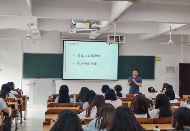 讲座内容分为两个部分:一是类比与类比思维,二是生活中的类比。首先谢耘教授运用实例解释了类比与类比思维。类比思维是一种或然性极大的逻辑思维方式,它的创造性表现在发明创造活动中人们能够通过类比已有事物开启创造未知事物的发明思路,其中隐含有触类旁通的涵义。