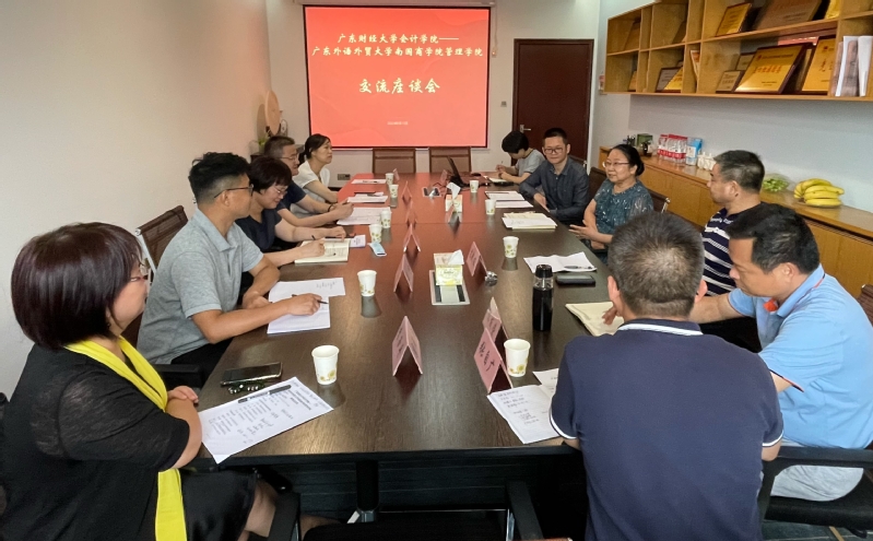 随后,双方围绕“国一流”专业建设、学生管理,硕士导师培养等议题展开深入交流。杨志强详细介绍了“国一流”专业建设经验,包括申报书填写细节、项目验收等内容。杜勇随即介绍了我院会计“国一流”建设的现状,并就学科竞赛、师资队伍建设等方面存在的问题与对方进行了深入交流。然后,冯钿就学生竞赛、考研辅导等学生组织管理方面与对方交换意见。他说,下学期我院将有学生赴广财交流学习,希望双方无缝衔接、密切合作。