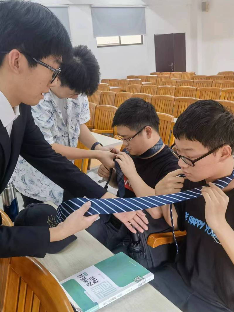 同时谢婕老师还邀请到了2019级的师兄师姐们为同学们进行演示与讲解,独特的课程,有趣的讲解,激发了同学们极大的兴趣,大家纷纷踊跃发言,表达自己对礼仪的看法。特别是在女生实操化妆、男生实操打领带环节时,同学们更是热情高涨,纷纷上前学习,并展示自己的学习成果。