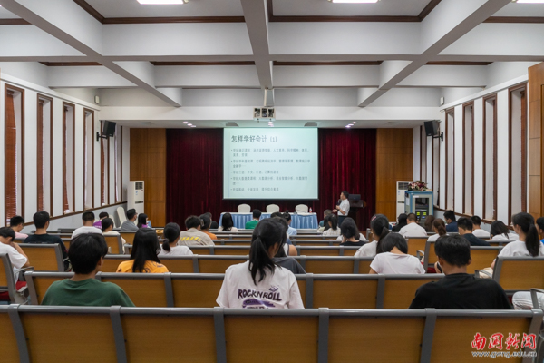 “虽然是以会计学专业为例子,但无论是学习哪个专业,都需要了解这个专业的发展历程,这对同学们清晰自己的专业思路,明确专业学习目标是很重要的。”王华在开场白中指出专业教育课的目的。