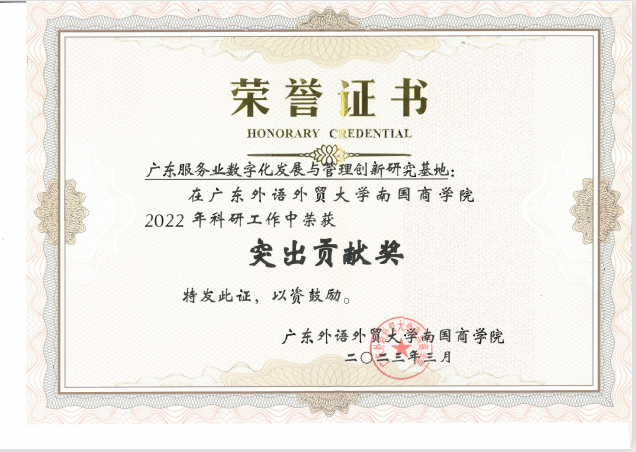 广东服务业数字化发展与管理创新研究基地获突出贡献奖