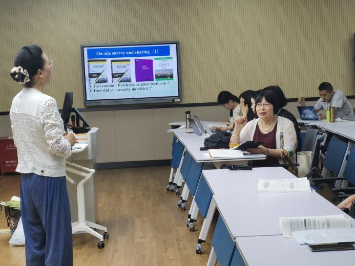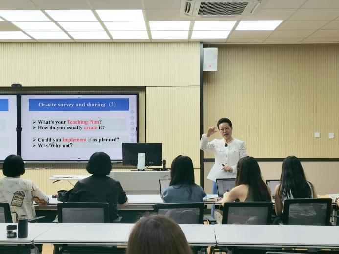 5月25日下午,全英(双语)教学工作坊English (bilingual) - Teaching Workshop在雷竞技官网G302课室成功举办。本次工作坊的主题:教师如何更好使用原版教材有效完成教学任务,由杜玉平副教授主讲。全校全英(双语)教师参加了此次工作坊。