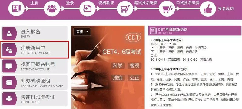 考生在规定时间内登陆http://cet-bm.neea.edu.cn/网站,点击“注册新用户”