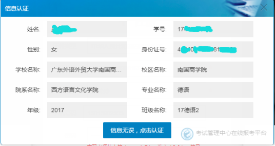 点击“注册”后,核对个人信息,如发现信息有误,请及时上报教务处进行更正,如信息无误,直接点击“信息无误”进入个人首页;